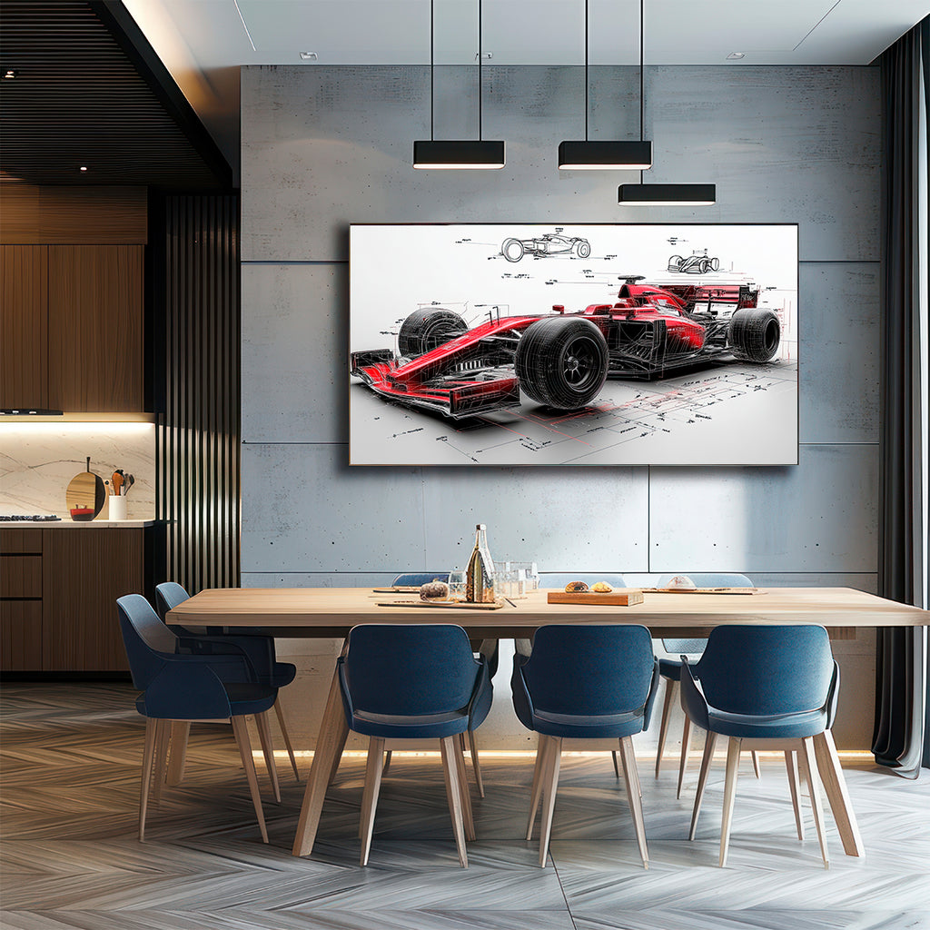 Este quadro é a escolha perfeita para presentear engenheiros, entusiastas de carros e design, ou qualquer pessoa que valorize a performance e inovação. Com sua estética detalhada e técnica, ele é ideal para quem busca uma peça que combine tecnologia, arte e paixão pela velocidade.